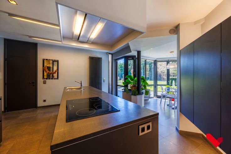 De leefruimtes zijn royaal en baden in natuurlijk licht. De woonkamer met open haard sluit aan op een eetruimte en een kwaliteitsvolle keuken met ontbijthoek. Op de eerste verdieping vind je vier ruime slaapkamers, waarvan drie met lavabo, een douchekamer en een aparte badkamer. Twee extra ruimtes zijn vlot toegankelijk vanuit het privé- én het beroepsgedeelte.