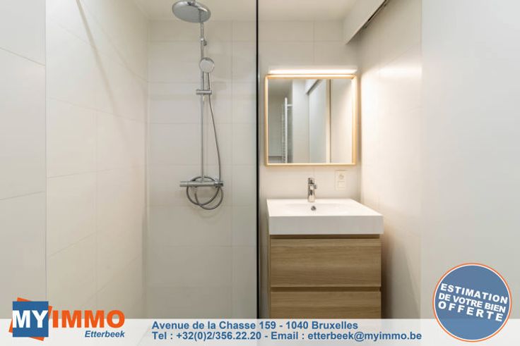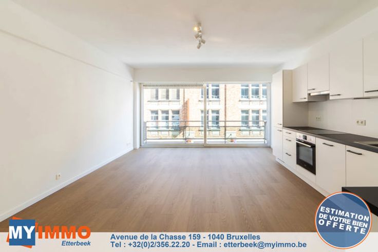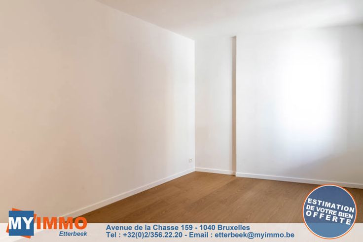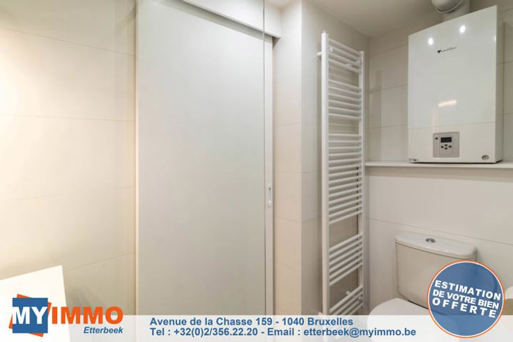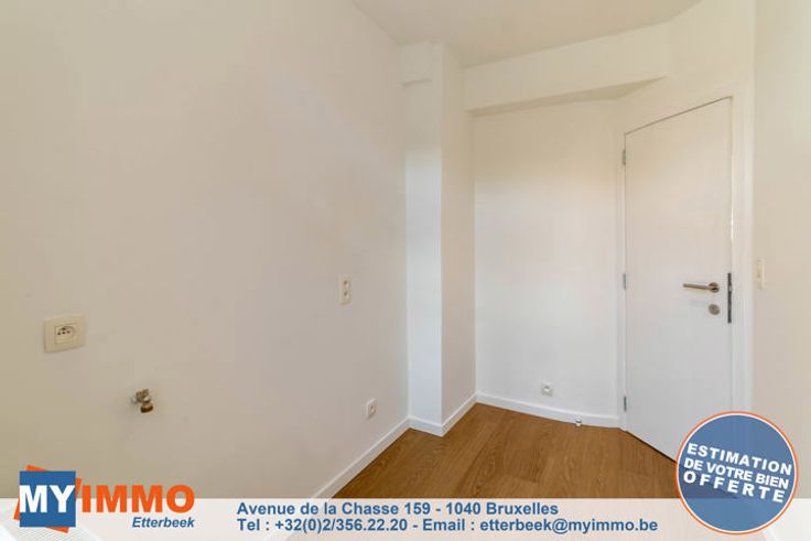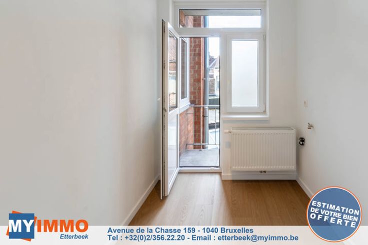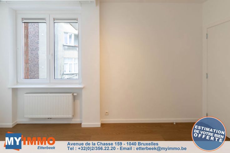 In een klein gebouw met 3 eenheden, mooie flat volledig en smaakvol gerenoveerd als volgt: Een grote woon-/eetkamer/keuken met toegang tot een balkon aan de voorkant, een doucheruimte met inloopdouche en toilet, een slaapkamer aan de achterkant en een kamer die gebruikt kan worden als was-/studeerkamer of kleedkamer met toegang tot een tweede terras. Alle kosten zijn individueel (€10 voor elektriciteit voor de gemeenschappelijke ruimtes). Informatie en bezoek: 02.356 22 20 of etterbeek@myimmo.be