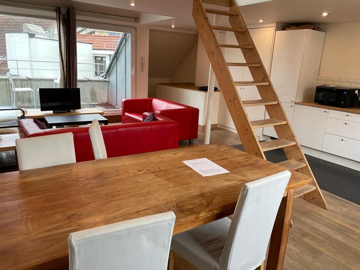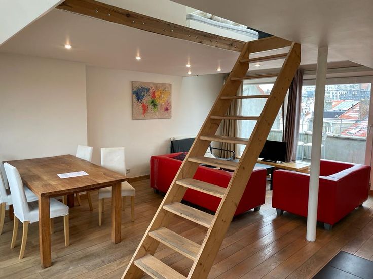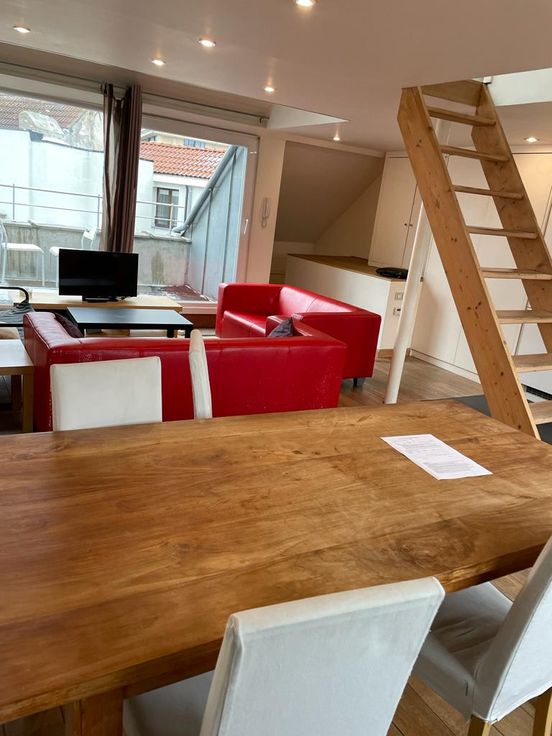 Superbe appartement Duplex de +/- 70m² dans une belle maison de ville. Appartement entièrement rafraîchi en 2025. 1ère location). Escalier privatif donnant sur un grand séjour ouverte avec cuisine et toilette séparée. A l'étage, la chambre et la salle de douche. Parquet dans toutes les pièces, cuisine full équipée, lave-linge et séchoir prévu dans l'immeuble (a partager). Très calme et lumineux. Terrasse de 6m² orientée sud est.