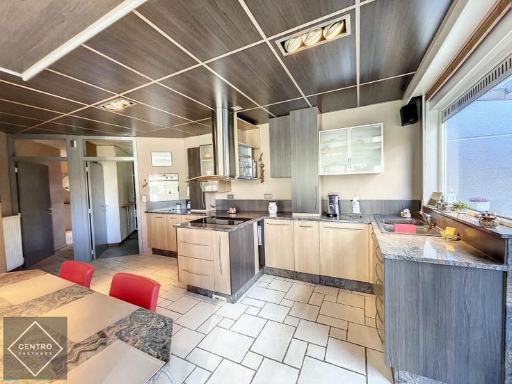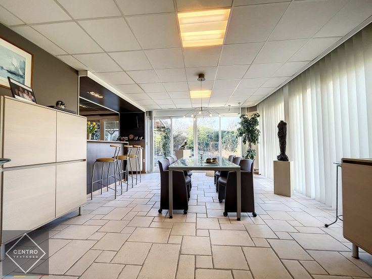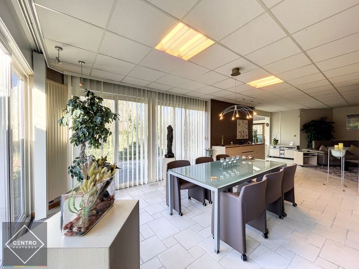 VERKOOP WEGENS VERHUIS Benaderende OPPERVLAKTEN: Constructie - bewoonbare oppervlakten Magazijn: 420m2   -  Toonzaal: 360m2   -   Kantoor: 120m2 (6m x 20m)  -  Woning: 223m2 (11,14m x 20m) Bestaande indeling kan gemakkelijk gewijzigd worden (geen dragende muren) - totale bebouwde oppervlakte van 1.123m2 ! Nog uitbreidingsmogelijkheden! Grondoppervlakte Totale grondoppervlakte: 3.326m2  Aantal parkeerplaatsen: 10-tal  INDELING: Kantoor/winkel: Inkomhal - afzonderlijke verkoopruimte (wanden in glas) - keuken - sanitair (dames/heren) - directiebureel - private parkeergelegenheid voor de deur. Magazijn: Magazijn/opslagruimte, voorzien van bureel, toilet en afzonderlijk, afgesloten ruimte. Woning Afzonderlijke inkomdeur - ruime inkomhal met gastentoilet en lavabo - lichtrijke woonkamer met gashaard - volledig geïnstalleerde keuken met granieten werkbladen en alle toestellen, waaronder keramische kookplaat, ingebouwde vaatwas en koelkast, dampkap, oven, microgolf, ...) - wasplaats/bijkeuken - veranda - 3 ruime slaapkamers - dressing - 2 badkamers - carport -  aangelegde tuin met terrassen. Alles op het gelijkvloers: geen trappen! AFWERKING: Kantoor/winkel: bevloering in vasttapijt- muren gepleisterd en behangen - verlaagd plafond (uitneembare tegels voor bekabeling) met ingebouwde verlichting - overal dubbele beglazing met schrijnwerk in PVC - centrale lichtstraat (veel natuurlijk daglicht) in het dak. Woning: keramische tegelvloer - muren gepleis... Renovatieplicht: onbekend