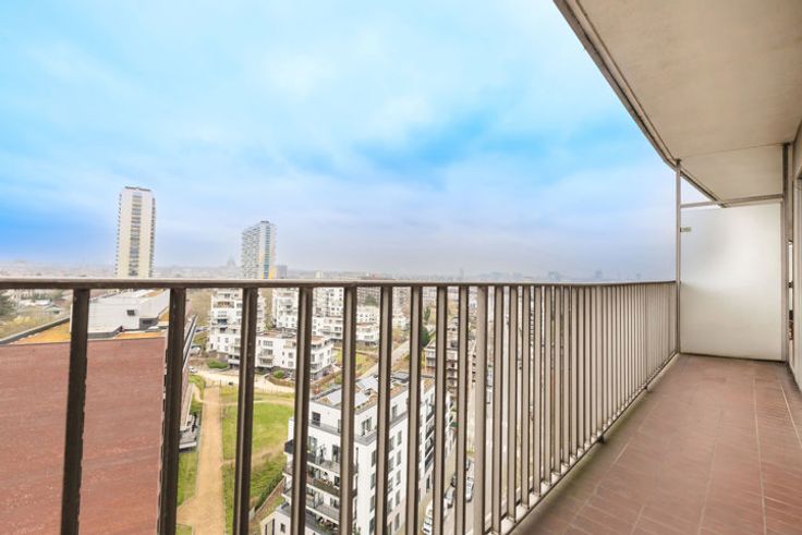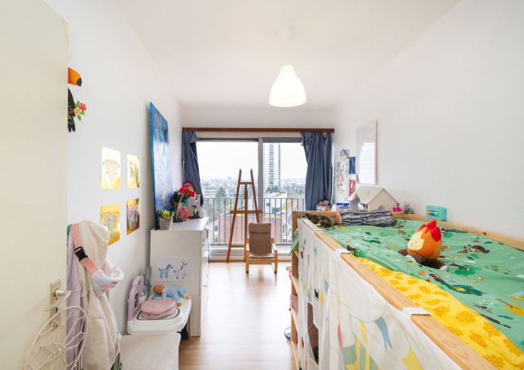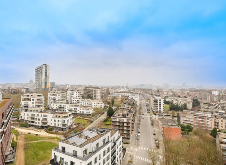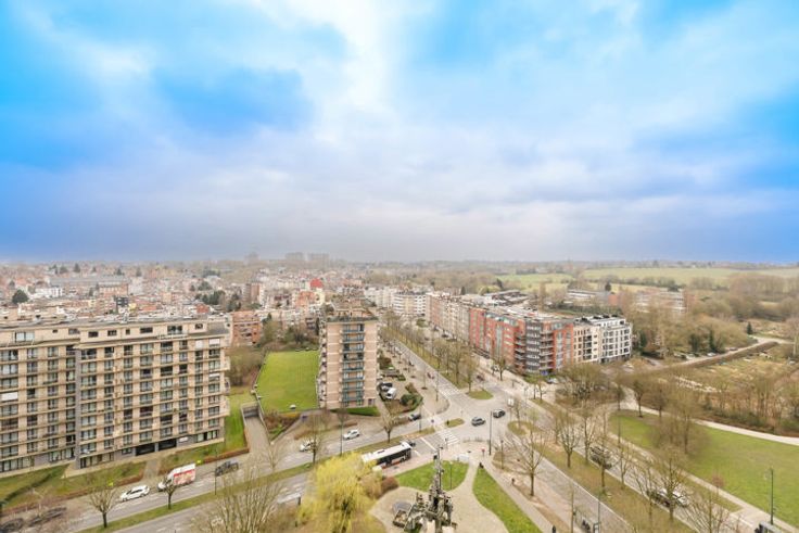 MOLENBEEK-SAINT-JEAN, Quartier Machtens, ruim appartement van ± 100m² bewoonbare oppervlakte gelegen op de 13de verdieping. Het is als volgt samengesteld: inkomhal, grote woonkamer van ± 32m², half ingerichte keuken, nachthal met kasten, 2 slaapkamers (± 17,5m² en ± 13,5m²), badkamer, apart toilet, zuidgericht voorterras van ± 10m², noordgericht achterterras van ± 7m² en kelder. Alle oppervlaktes zijn indicatief. EPB: E-, 42kg/(m²/jaar). Elektriciteit CONFORMS. Garagebox optioneel: 30.000€. Huurverplichting te respecteren. TREVI NORD INFORMATIE: 02.410.10.30. Bezoek ook onze Trevi Nord Facebook pagina