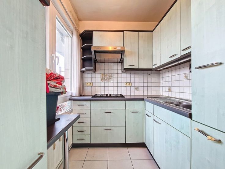 Ideaal gelegen aan de Louis Mettewie 50 Boulevard, in het rustigste deel van het flatgebouw Mettewie 40-50. Dit charmante studio-appartement van 31 m² heeft een terras van 6 m² op het westen met een prachtig uitzicht over de stad.