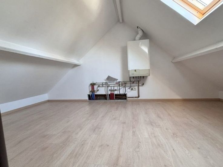 Deze gezellige woning vlakbij het centrum van Temse beschikt over een inkomhal, een gastentoilet, een ruime en lichtrijke woonkamer met een open ingerichte keuken (gaskookvuur, dampkap, oven, frigo, vaatwasmachine), 2 slaapkamers (1 slaapkamer op de 1e verdieping en 1 zolderkamer), een badkamer met lavabo, ligbad, douche en toilet en een gezellig terras met tuinberging. Energiezuinige woning – energielabel B. Centraal gelegen, op wandelafstand van winkels, scholen en openbaar vervoer. Goede bereikbaarheid via N16 en E17.