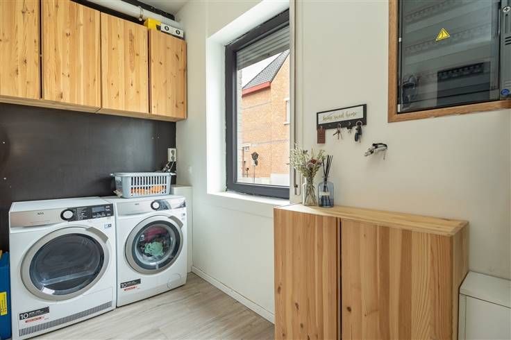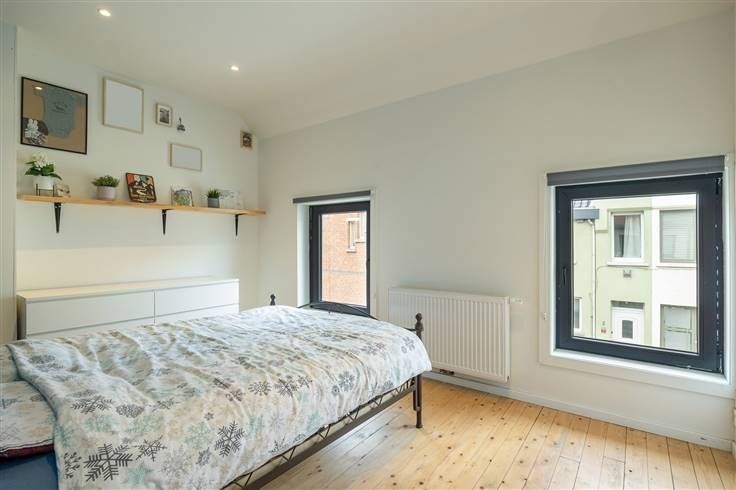 Deze gerenoveerde instapklare woning biedt een ideale combinatie van modern comfort en een gunstige ligging. Deze gunstig gelegen woning is centraal gelegen nabij scholen, openbaar vervoer en winkels zoals Colruyt, Carrefour en Delhaize. Bij binnenkomst leidt de inkomhal naar een lichtrijke leefruimte met een open keuken, uitgerust met hoogwaardige toestellen, waaronder vaatwasser, oven, microgolf, dampkap, inductievuur en ingebouwde koelkast, een dubbele wastafel en voldoende kastruimte. Aansluitend is er een praktische berging/wasplaats en een apart toilet. De woonkamer biedt directe toegang tot het gezellige terras, waar u in alle rust kunt genieten van de buitenlucht. Op de eerste verdieping bevinden zich 2 slpk. van 12m² en 7m²,dewelke genieten van enorm veel lichtinval. De moderne badkamer is voorzien van een inloopdouche, dubbele wastafel en toilet. De zolderverdieping van 19m² biedt extra ruimte die kan dienen als 3de slpk., hobbyruimte of bureau. Deze instapklare woning is volledig afgewerkt en vormt een ideale woonst voor gezinnen of koppels die op zoek zijn naar een comfortabele en centraal gelegen thuis. Privatieve garagebox mee aan te kopen voor 25.000 euro. Bijzonderheden: ·Energiezuinig met EPC label A ·Volledig gerenoveerd ·Ruime zolder ·Garagebox Dossierbeheerder: Sinem Ayhan - Sinem@omniavastgoed.be - 0466/08.01.90