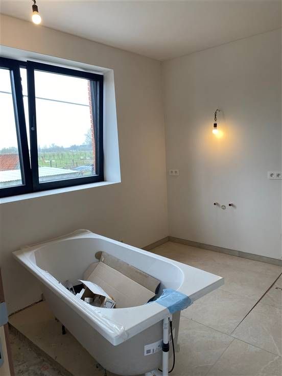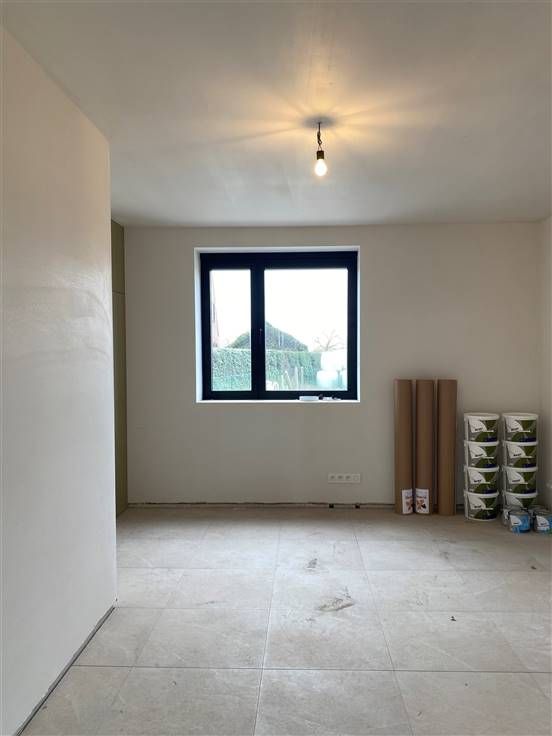 De woning met karaktervolle gevel is volledig gerenoveerd en zal tot in de puntjes worden afgewerkt. De inkomhal met gastentoilet is voorzien met een nisje voor een vestiairekast. De riante leefruimte heeft door de grote raampartijen veel natuurlijk lichtinval en via het schuifraam heeft u meteen toegang tot het terras. De open keuken met keukeneiland is voorzien van alle nodige toestellen en witte kasten. Verder op het gelijkvloers vindt u een bureauruimte en een functionele berging met wasplaats. Op de bovenverdieping zijn er 3 volwaardige slaapkamers en een badkamer met inloopdouche, ligbad en lavabo alsook een apart toilet. Boven is er nog een berging voorzien in combinatie met technische ruimte. Aan het pand wordt een oprit aangelegd voor 2 wagens alsook een ingezaaide tuin mét tuinhuis, omringd door een aangeplante haag. Het terras is zuidoost-georiënteerd en door de aanwezigheid van de zijtuin kan u op elk moment van de dag genieten van de zon.