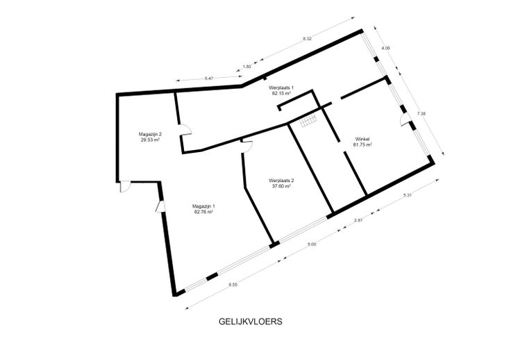 Op het gelijkvloers vindt u de winkelruimte, grote werkplaats, toilet, kelder, werkplaats met koelcellen, magazijn/garage en parking.