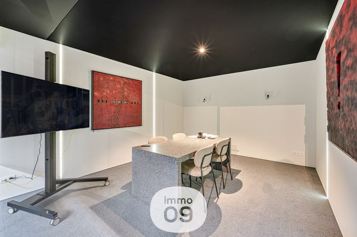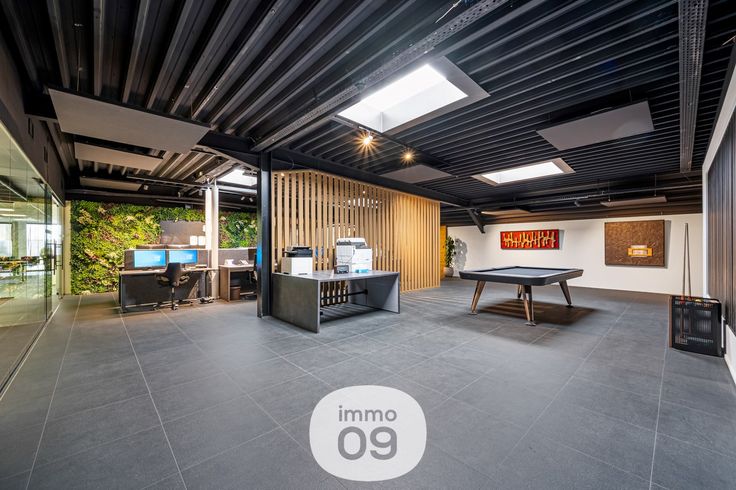 inkom met onthaal, toonzaal, een keuken, kantoor, opslag met atelier en een sanitair blok (2 toiletten met lavabo + piscine).