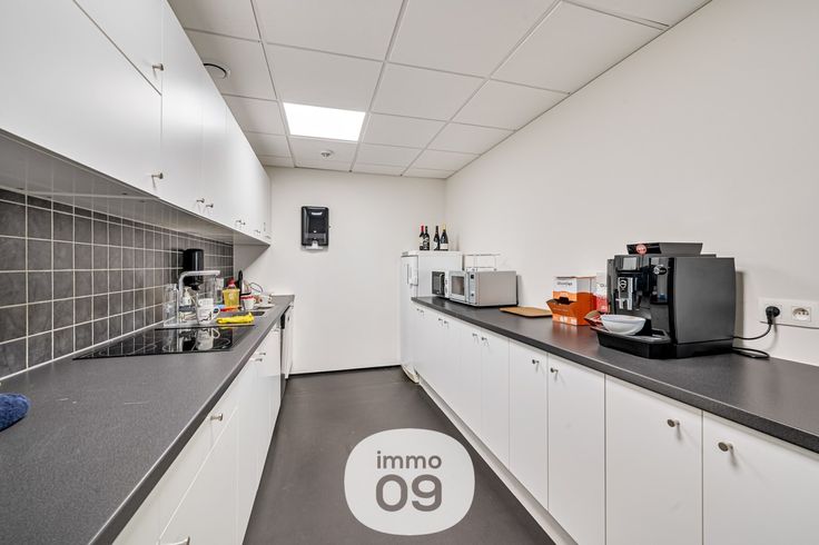 Het magazijn biedt dan weer voldoende ruimte voor de opslag van voorraad en materialen. Hoge plafonds, brede toegangsdeuren, alles is aanwezig om het laden en lossen van goederen vlotter te laten verlopen.