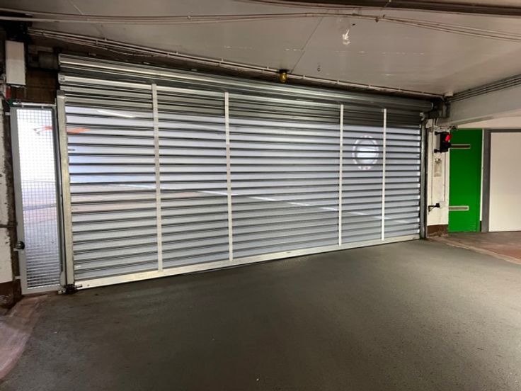 De parking, bestaande uit twee verdiepingen, is toegankelijk via een elektrische beveiligingspoort.
