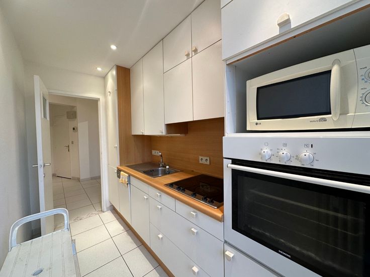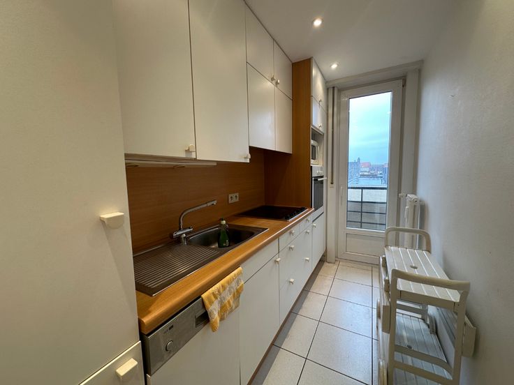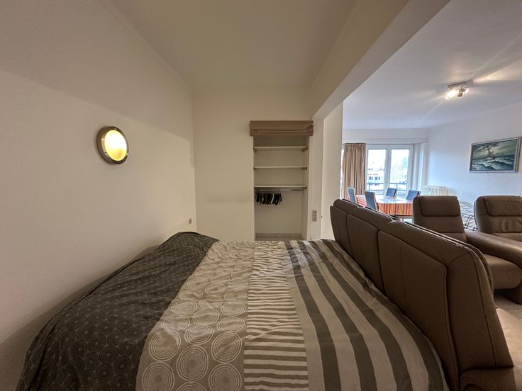 Inkomhal met vestiaire. Ruime woonkamer met apart slaapgedeelte dewelke kan worden voorzien van een gordijn als afsluiting. Aparte, gesloten keuken voorzien van alle toestellen. Badkamer met bad, dubbele lavabo en wasmachine. Een ideaal vakanatie appartement!