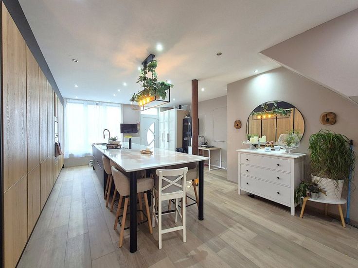 Franceschini immobilière vous présente ce jour cette maison d’habitation, 3 chambres, avec cour, située proche des commodités et du centre de Fléron. Faire offre à partir de 249.000 euros (sous réserve d’acceptation des propriétaires). Voici sa composition : Sous-sol : 2 grandes pièces actuellement aménagées en bureaux (16, 16m²), salle de douches à l’italienne (douche, double vasque à placer), buanderie (espace machines, lavabo), coin chaufferie et w.c. suspendu. Rez-de-chaussée : spacieux séjour (+/-55m²) comprenant un living et une cuisine américaine (frigo, congélateur, taque induction avec hotte incorporée, four, micro-ondes, évier, lave-vaisselle), cour aménagée (+/-18m²). 1er étage : 2 chambres (+/-11, 11m²), salle de bains (double v asque, baignoire, douche, toilette). 2ème étage : chambre (+/-26m²). Chauffage central gaz, châssis double vitrage pvc, volets, vidéophone. Possibilité de créer une chambre supplémentaire selon permis d’urbanisme octroyé en date du 20/07/23. Superficie totale terrain : 83m², superficie d’après plans de permis : +/- 180 m² PEB provisoire : sur demande. R.C. : 438 €. À découvrir !