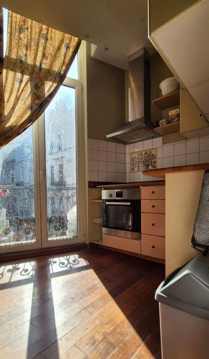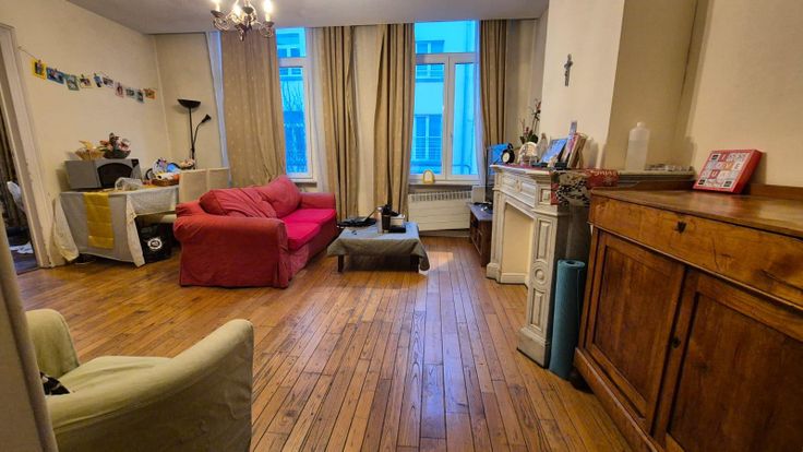 Gemeubeld 1 kamer- appartement (60m2) op 1e verdiep van heren-huis dicht bij Ambiorix-square ; Het appartement bestaat uit : hall met inbouwkasten, mooi ingerichte living met antieke meubels, ingerichte keuken (koelkast, oven, kookplaat, dampkap, microgolf, vaatwasmachine), badkamer (bad, WC en wastafel); ruime kamer met inbouwkasten ; parketvloer, kalm en functioneel; dubbel glas ; TV, wasmachine en droogkast ; ruimte voor fietsen; lasten houden in : water, elektriciteit gemene delen, verzekering BV ; wifi ; priv electr en gas ten laste van de huurder; aftrekbaar belastingen / bedrijfshuur toegelaten; Kunst –Wet en Madou metro op 300m , winkels & restaurants op 300m ; Ambiorix square en Koninklijk Park op 400m ; Grote Markt 1.5 km