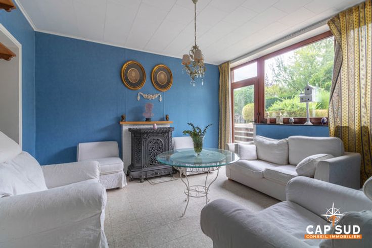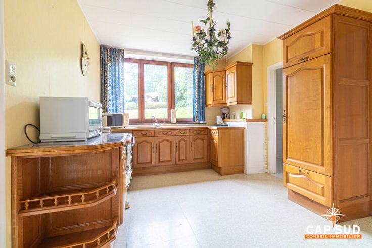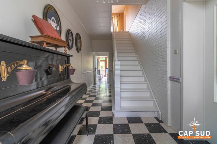 Het huis aan de rechterkant biedt ongeveer 160 m2 woonruimte, ook hier met een grote woonkamer en een tweede, kleinere zitkamer met uitzicht op de tuin, een keuken, een bijkeuken en een doucheruimte, twee mooie slaapkamers op de eerste verdieping, een grote zolder die verbouwd kan worden en kelders. De tuin, die gedeeld wordt door de twee huizen, is prachtig aangelegd en beplant met bomen.