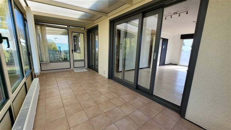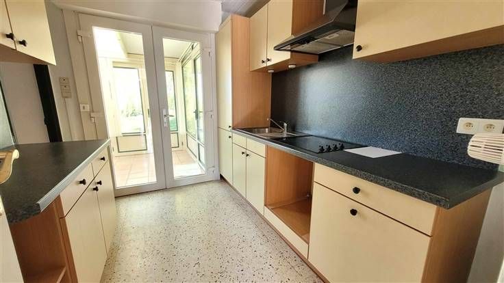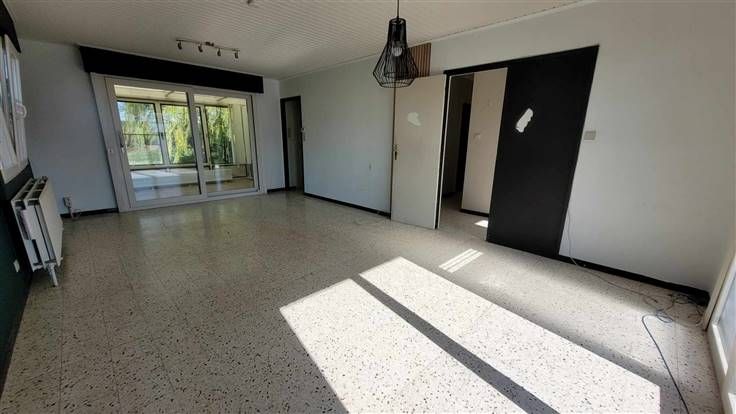 Au r-d-c : un hall d'entrée desservant un séjour traversant avec une véranda baignée de lumière. Une buanderie, un wc, une cuisine équipée et 2 chambres ainsi que la salle de bain.