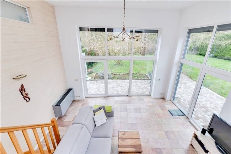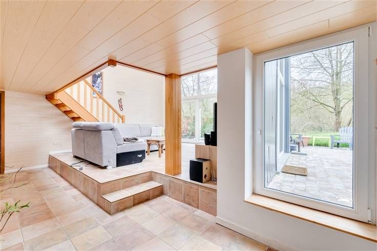 Très originale avec son séjour au niveau du jardin offrant une vue sur la nature.