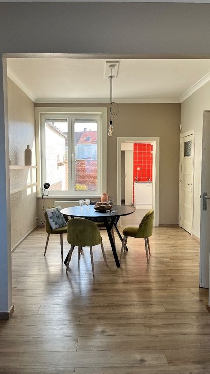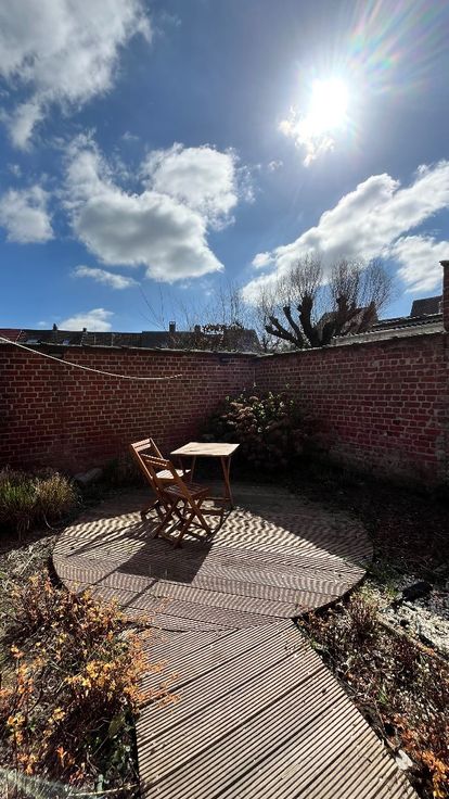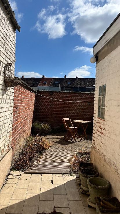 De indeling is als volgt: een smalle, lange gang met trap naar de eerste verdieping, een gezellige leef- en zitruimte met kachel, een keuken met grote raampartijen, en een badkamer voorzien van toilet, douche en wastafel. De eerste verdieping biedt twee ruime kamers, terwijl de tweede verdieping beschikt over een grote kamer en een zolderkamer die kan worden omgebouwd tot een volwaardige slaapkamer. Deze woning, centraal gelegen, heeft vernieuwde ramen (2010) en vernieuwd dak (2008), een blanco elektrische keuring en een zonnige stadstuin. Neem vrijblijvend contact op via maggie@vastgoednorman.be of 0479402404.