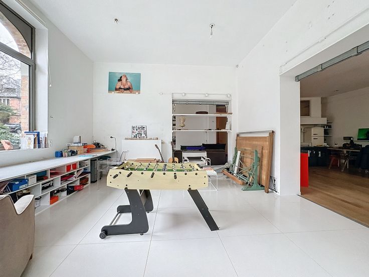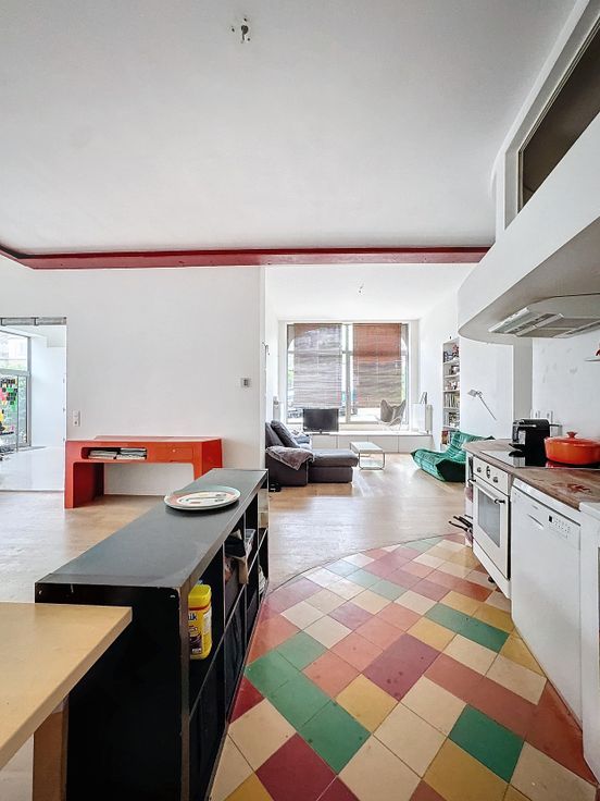 Niché dans un clos privatif très prisé, ce loft d’environ 200 m2 n’attend plus que vous. Très lumineux et modulable ce loft propose un vaste séjour d’environ 50m2, 2 chambres + 1 chambre ou atelier, un bureau, un dressing avec bain, une salle de douche et un petit espace extérieur + possibilité d'acquérir un parking. Performances énergétiques PEB D (178 kwh EP /m2.an). Pas de cave mais espace de rangement. Petite Copro. Charges mensuelles: environ 260 euros /mois. ( Frais de copro, chauffage, eau ) Proche des transports, des commerces. A VOIR SANS TARDER. Libre à l'Acte. Publicité non contractuelle.