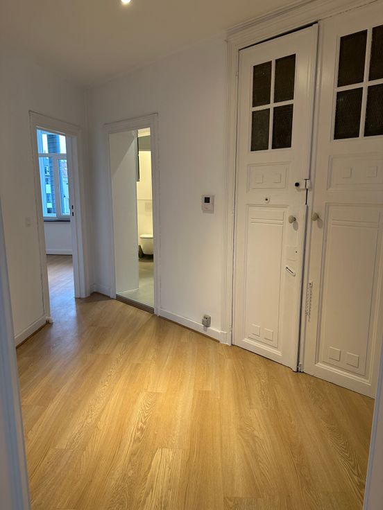 Appartement entièrement rénové situé au 3ème étage sans ascenseur. Hall d'entrée, living/salle à manger, vue sur l'Eglise de la place Brugmann, 2 chambres de 15m2 et 10m2, cuisine neuve full équipée, SDB neuve, Terrasse de 8,5m2 S/SO. Electricité aux normes. Pas d'agences immobilières svp. IPI 508265