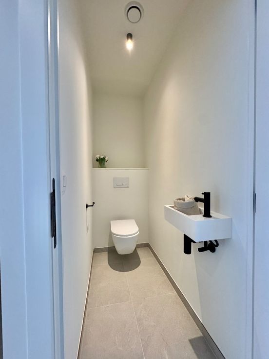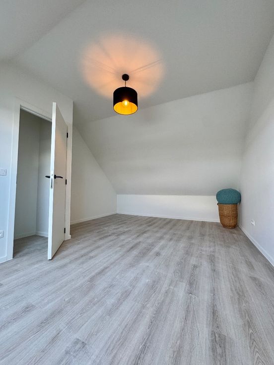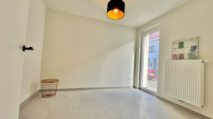Via de inkom heb je de eerste polyvalente kamer (1 van de 3 kamers), berging, toilet, open keuken met toestellen en een grote zitruimte. Het eerste verdiep heeft een grote kamer en een volwaardige badkamer met toilet, bad en douche. Het 2de verdiep heeft een prachtige masterbedroom.