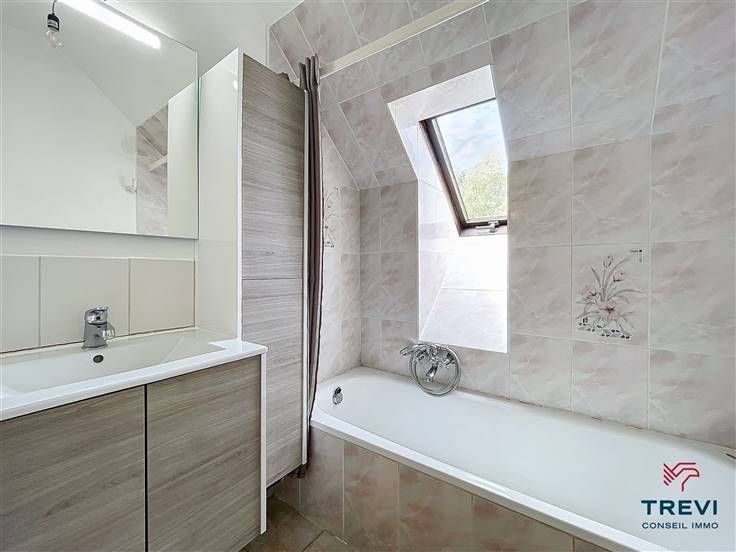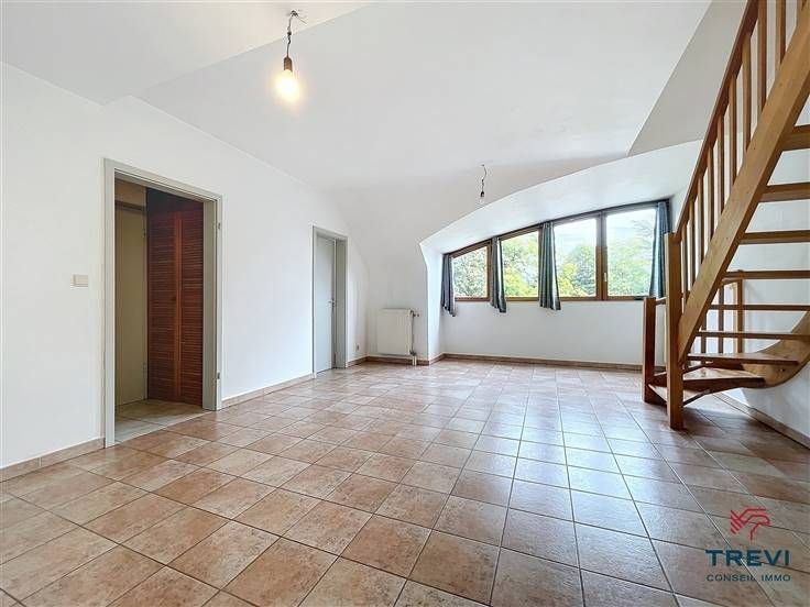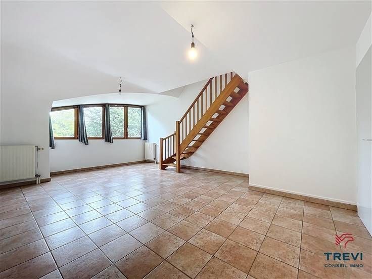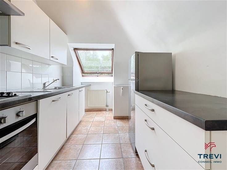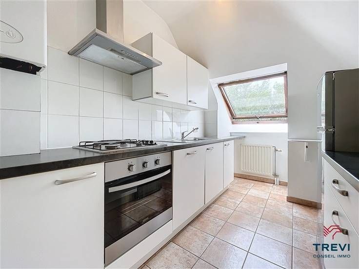 Sorry er is geen nederlandse vertaling beschikbaar. Dans un très bel environnement résidentiel paisible à deux pas du centre et de la gare, bel appartement en duplex au dernier étage d'une jolie résidence de standing avec ascenseur. L'appartement se compose d'un hall d'entrée carrelé avec grand vestiaire sur mesure vers ses toilettes séparées. Beau séjour très lumineux de 30 m² et agréable cuisine toute équipée attenante. Chambre carrelée de 11 m² et salle de bain composée d'une baignoire, d'un meuble évier et d'un coin buanderie. A l'étage, via le spacieux salon, un escalier monte vers une deuxième chambre de 10m². Cave. CC au gaz. Emplacement de parking extérieur 50€ /mois et 120€/mois charges communes de l'immeuble. . PEB B. Électricité conforme. Infos et visites au 02/355.50.55