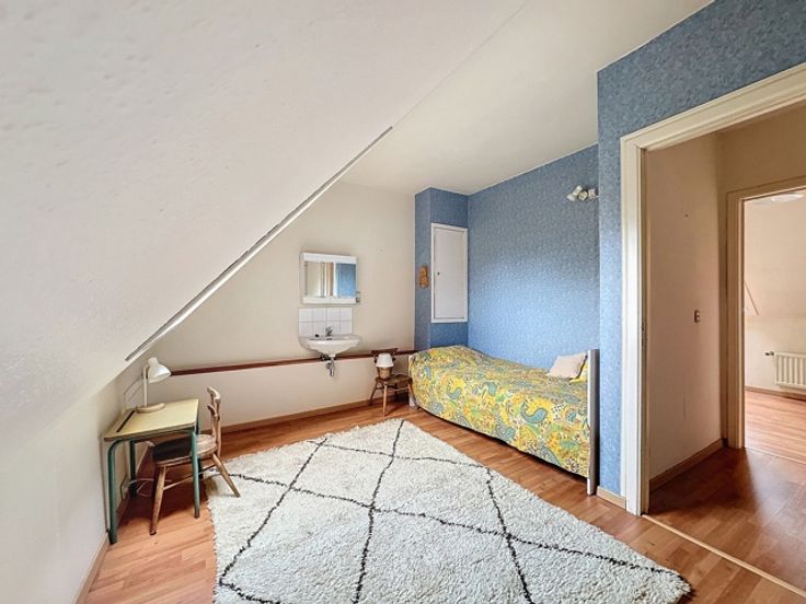 1e verdieping: Hoofdslaapkamer met opbergruimte, badkamer, polyvalente ruimte.