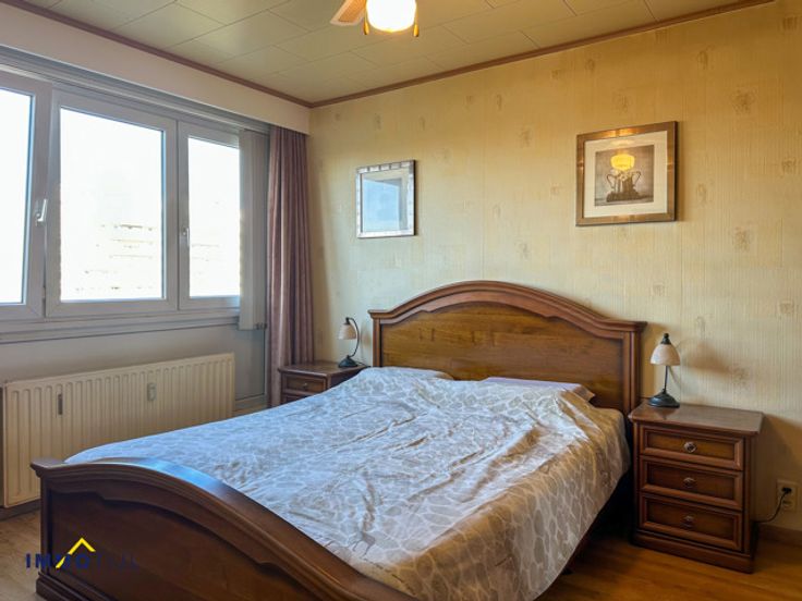 Lichtrijk appartement met 2 slaapkamers, gezellig terras en een uitstekende ligging! Dit zonnig appartement is gelegen op de 8ste verdieping (lift aanwezig) en beschikt over een inkomhal, een lichtrijke woonkamer, ingerichte keuken met aansluitend toegang tot het terras met prachtig zicht, 2 ruime slaapkamers en een badkamer (douche in bad en lavabo) met apart toilet.