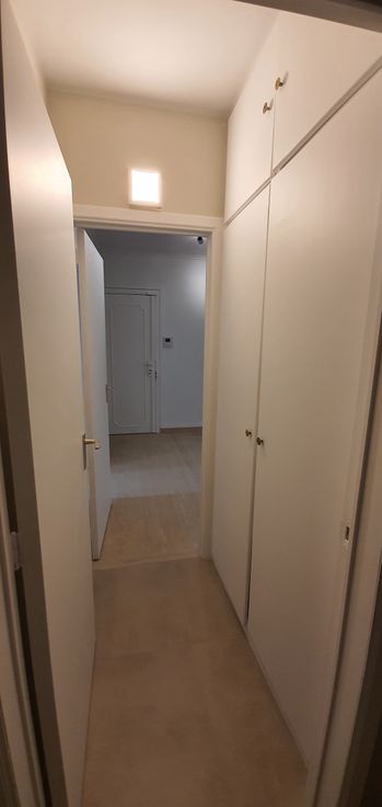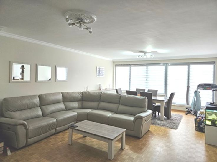 Rustige buurt naast park/bus/winkels/scholen, Ring Brussel, klein gebouw met lift, heel aangenaam appartement (renovaties 2020/2021), met ingangshal, vestiaire, toilet met berging kasten, ruime woonkamer (parket), ingerichte open keuken (koelkast, frezer 3 schuiven, dampkast, vitro ceramisch, oven, vaat machine, kasten,...), was berging voor machines, nacht hall, grote berging, badkamer met toilet, 2 slaapkamers (parket), terras (+/-7m op1,40m), kelder. Mogelijkheid om een privé grote garage box te verhuren voor +150€/maand.