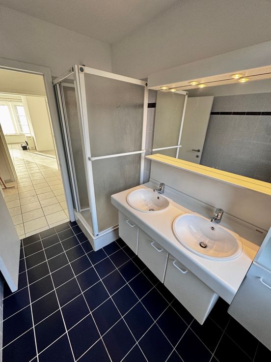 Au centre-ville, à 200m de la Grand-Place, dans une rue agréable, ce beau rez-de-chaussée se compose d'un hall d'entrée, d'un séjour de +/-27m2, d'une cuisine équipée (vitrocéramique, four, hotte, frigo, évier, meubles), d'une buanderie, de deux chambres de +/-12,8m2 et 9,8m2, d'une salle d'eau avec douche et meuble à double vasque, et d'un wc séparé avec lave-mains.