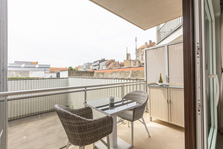 In de rustige en centraal gelegen Residentie Athena bieden wij een studio gelegen op de tweede verdieping, aan de achterzijde van de residentie. Deze mooie studio heeft een opklapbed en via het grote schuifraam van de woonkamer bereikt u het aangename zonneterras. De open keuken is volledig ingericht en voorzien van alle hedendaags comfort en de badkamer is voorzien van een ligbad/douche, toilet en lavabo.