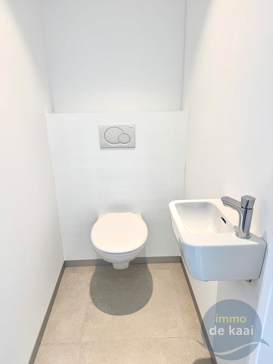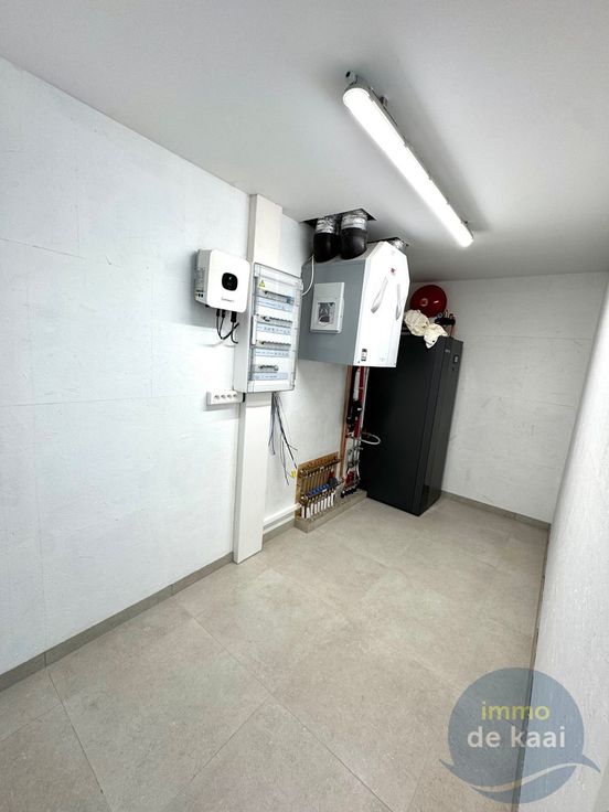 Uiterst ruime bergplaats waar ook alle technieken te vinden zijn. Badkamer met douche, lavabo en toilet.