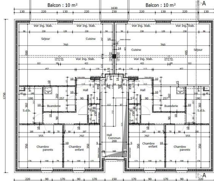 Etage 1 - 2 appartements : Hall d'entrée, wc séparé, living avec cuisine ouverte, salle de bains, hall de nuit avec 2 chambres, buanderie et balcon.