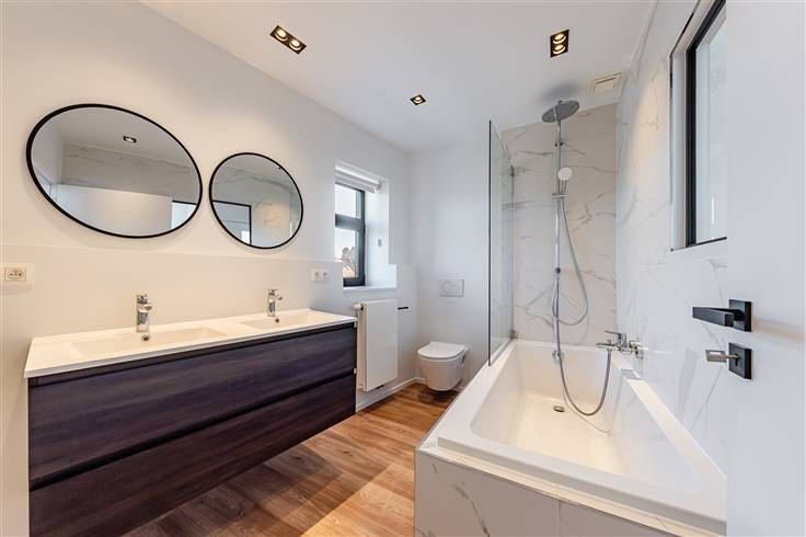 Zeer mooie woning volledig met smaak gerenoveerd, met tuin op het Zuid-Westen. Het huis bestaat uit: OP DE BEGANE GROND: •Mooie inkomhal met opbergkasten •3 prachtige aangrenzende kamers van circa 15m², met planken, kwaliteitslichtpunten en opbergkasten •Een volledig uitgeruste Amerikaanse keuken met uitzicht op de tuin (buitenbergkast) •Een toilet met lavabo OP DE VLOEREN: •Drie slaapkamers van elk circa 15m² met op maat gemaakte kleedkamer, zonwering en lichtpunten •2 badkamers met ligbad, dubbele lavabo en toilet Het huis ligt geheel onder kelders. Wasruimte. Waterontharder, alarm, parketvloer, uitstekende PEB (nieuw dubbel glas enboiler). De woning beschikt over een garage en een parkeerplaats voor de woning. Het ligt in een ideale omgeving: op 5 minuten lopen van het treinstation en op 10 minuten van het winkelcentrum Braine l'Alleud, supermarkten, de ringweg van de snelweg, Waterloo en dicht bij de Vallée Bailly-school en het Cardinal Mercier College. 3 jaar contract.
