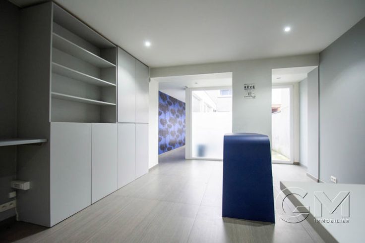 * Rez-de-chaussée : hall desservant d'une part le commerce et de l'autre l'appartement. Espace commercial actuellement occupé en tant que bureau offrant une belle visibilité avec une grande vitrine . Kitchenette et coin buanderie + WC séparé.