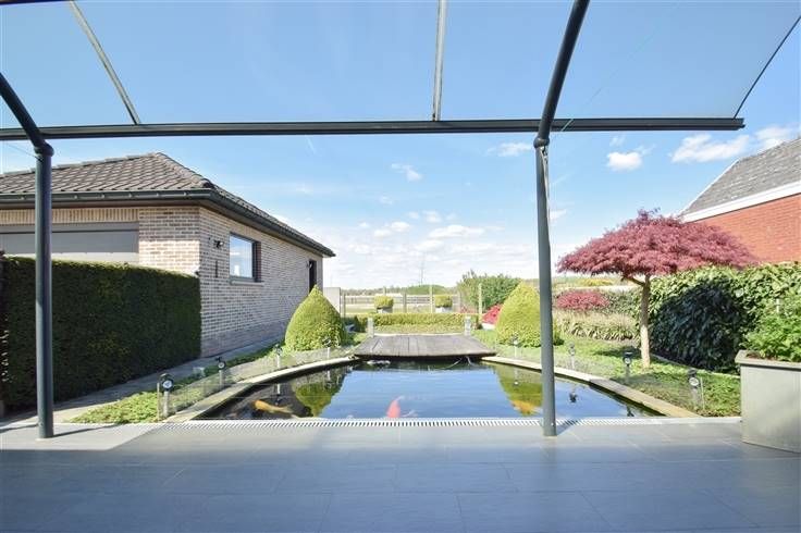 Deze instapklare woning beschikt over een bewoonbare oppervlakte van 175m² en is gelegen op een perceel van 5a 80ca. Winkels, scholen, het openbaar vervoer en verbindingswegen zijn vlakbij gelegen. De indeling is als volgt: een inkomhal (3,2 x 3,3m), een toilet met handwas, een woonkamer (4,7 x 9,2m) met 2 pelletkachels en een keuken (3,7 x 4,4m) uitgerust met een keramische kookplaat, dampkap, combi-oven, koelkast, diepvriezer, vaatwasmachine en dubbele spoelbak dewelke toegang geeft tot een berging-wasplaats (3,2 x 4,3m). Verder bevindt zich op het gelijkvloers een eerste slaapkamer (4,1 x 4,1m) en een badkamer (2,9 x 3,3m) voorzien van een ligbad, douche, dubbele wastafel en een toilet. Op de eerste verdieping leidt de nachthal (13m²) naar 2 slaapkamers (15,9m²; 3 x 4,3m) en een technische ruimte (3,3 x 6,5m)dewelke kan dienen als 3de slaapkamer. Bovendien is er een omheinde tuin met een vijver, een overdekt terras (21m²) en een tuinberging alsook een garage met een stockagezolder voorzien van een automatische poort (7,6 x 3,8) en een carport (1,7 x 5,7m). Centrale verwarming op stookolie | 2 pelletkachels | airco o.b.v. warmtepomp | 20 zonnepanelen | deels elektrische rolluiken | alarmsysteem & camera's. Wenst u deze woning te bezichtigen, neem dan contact op via 015 711 000 - info@clavisvastgoed.be
