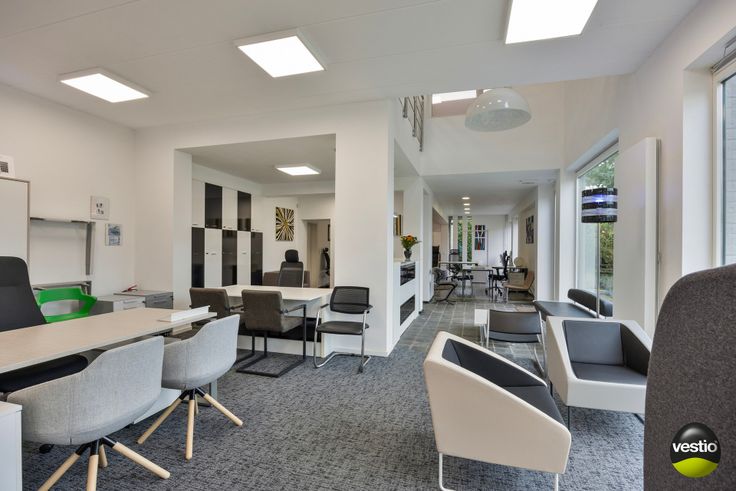 Op het gelijkvloers zijn er twee trappen (in het oorspronkelijke pand en nieuwe gedeelte), beide trappen brengen je naar de 1ste verdieping die mooi opgesplitst is in verschillende kantoorruimtes, showroom, toilet en kitchenette.
