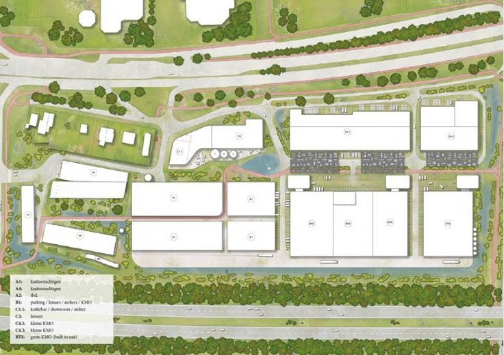 KMO-zone ‘The Sheds’. een cluster van twee aanpalende bedrijfsverzamelgebouwen