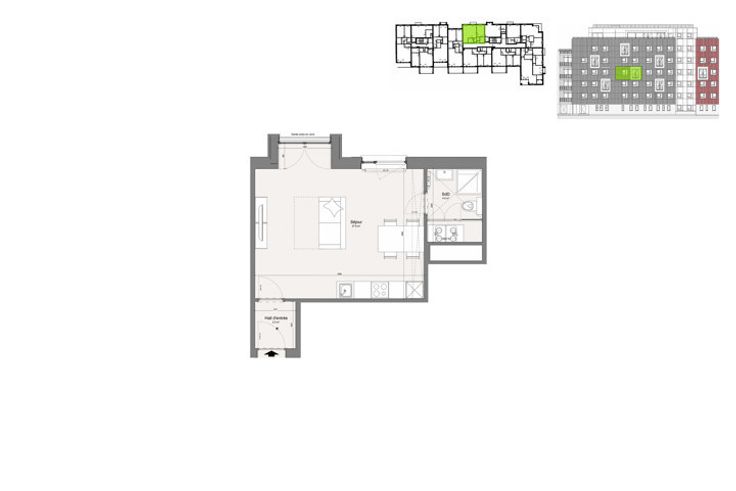 Studio situé dans la Résidence Les Terrasses de Bozière, nouveau quartier idéalement situé à Tournai, à deux pas de la gare et du centre-ville