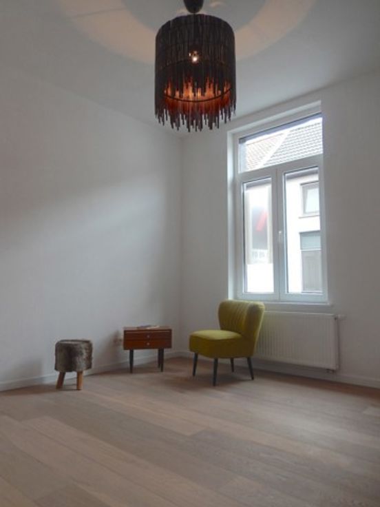 Gerenoveerde woning in volledig vernieuwde en rustige straat. De woning werd zeer kwalitatief gerenoveerd (volledig uitgeruste keuken, parketten, schilderwerken en verlichting) en heeft een leefruimte met open keuken, terras met tuin, badkamer met inloopdouche, slaapkamer 1 en grote slaapkamer 2 (kan opgesplitst worden).