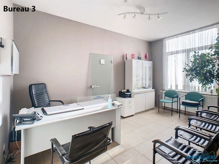 Bureaux idéalement situés à proximité de Fléron et du Ravel avec facilité de parking Différentes possibilités - location par bureaux ou l'entièreté - location à la journée également possible. Bureau 1 - 2 pièces (+/- 45m²) - 650€/mois Bureau 2 - bureau (4m x 3,8m) + pièce 1 (2m x 6m) + pièce 2 (3m x 3m) + pièce 3 (2m x 2m) - 600€/mois Bureau 3 - bureau (2,9m x 4,7m) + bureau (2,4m x 4,1m) - 500€/mois Bureau 4 - bureau (+/- 17m²) - 400€/mois Entrée commune à tous les bureaux. Salle d'attente et toilette communes aux bureaux. Châssis PVC DV En ordre sécurité pompiers Charges à déterminer