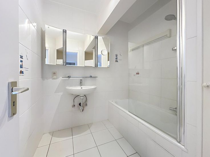 Het appartement heeft twee slaapkamers (+/- 15 m² en 13 m²), beide met directe toegang tot het balkon (+/- 6 m²) met een zuidoostelijke oriëntatie, ideaal om van de ochtendzon te genieten. De badkamer is voorzien van een wastafel en een bad, en het toilet is apart voor extra comfort.