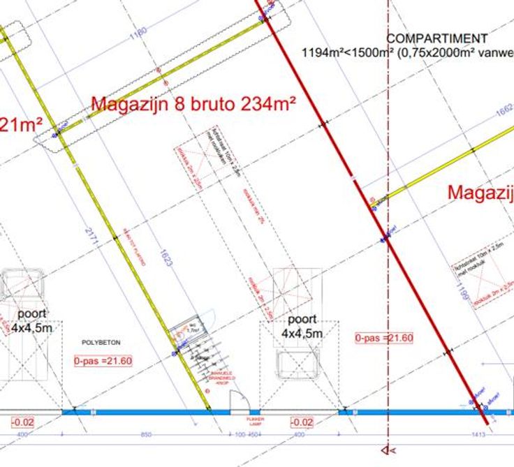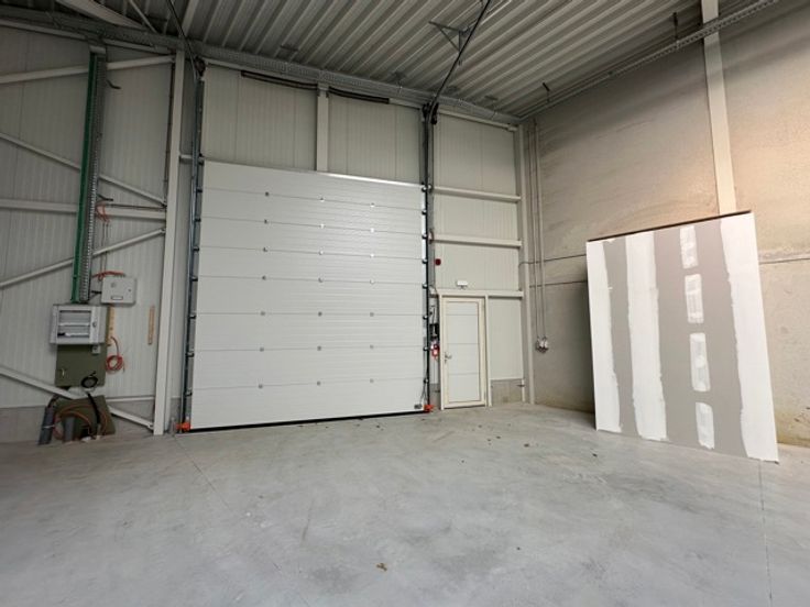 De hal heeft een hoogte van 7 meter en beschikt over een sectionale poort van 4,5 meter hoogte. Alle voorzieningen zijn aanwezig zoals een toiletruimte, elektriciteit, drijfkracht, ...
