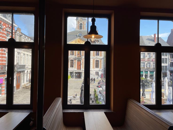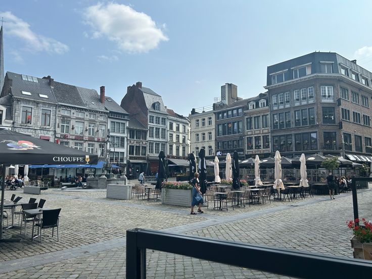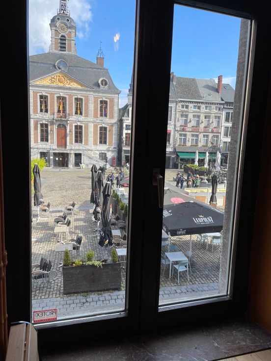 Sur la Grand PLace face à l'hôtel de ville. Terrasse du printemps à l'automne.