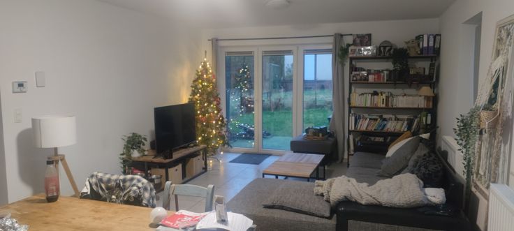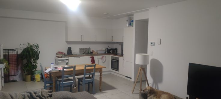 Spacieux séjour avec cuisine équipée : four, frigo, hotte, plaque vitrocéramique, lave-vaisselle 🍽️