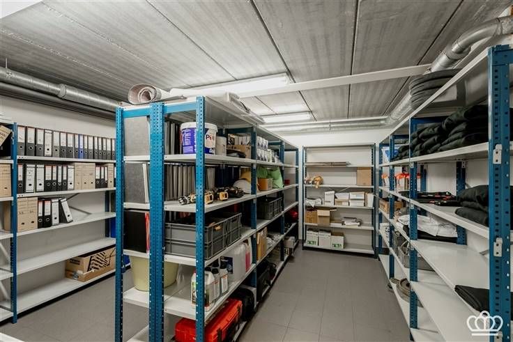 Aan de voorzijde vindt u de inkomhal met een ontvangstbalie, een ruim kantoor aan de overkant, toiletten en een keuken, evenals een computerruimte en een archiefruimte. Aan de achterzijde bevindt zich een aparte ingang met toegang tot extra toiletten, een doucheruimte en een groot landschapskantoor. Daarnaast is er een ruim magazijn.