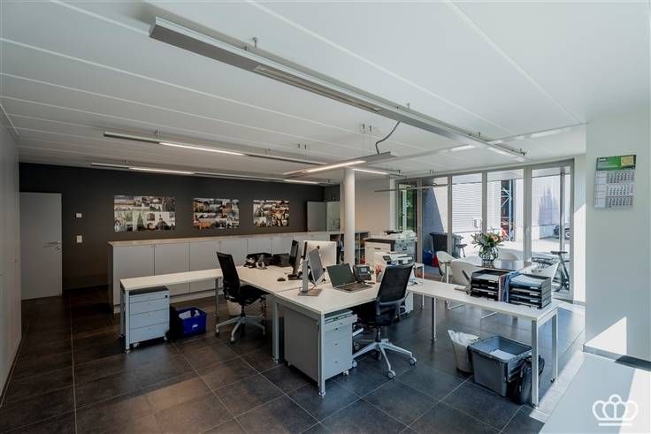 Modern en functioneel kantoorgebouw met ruim magazijn en bijhorende faciliteiten te huur in Essen, ideaal voor bedrijven die op zoek zijn naar een combinatie van kantoor- en opslagruimte in een goed bereikbare omgeving.