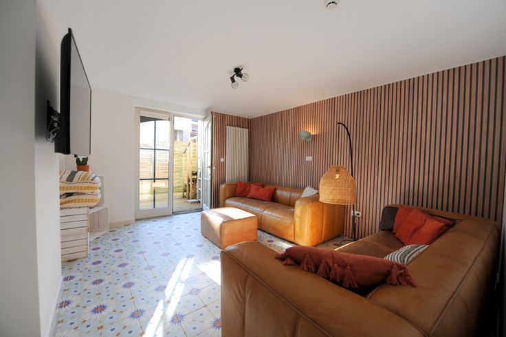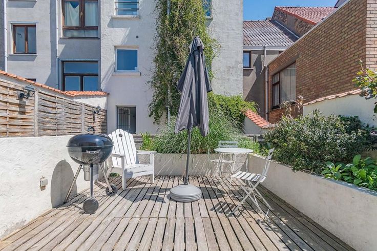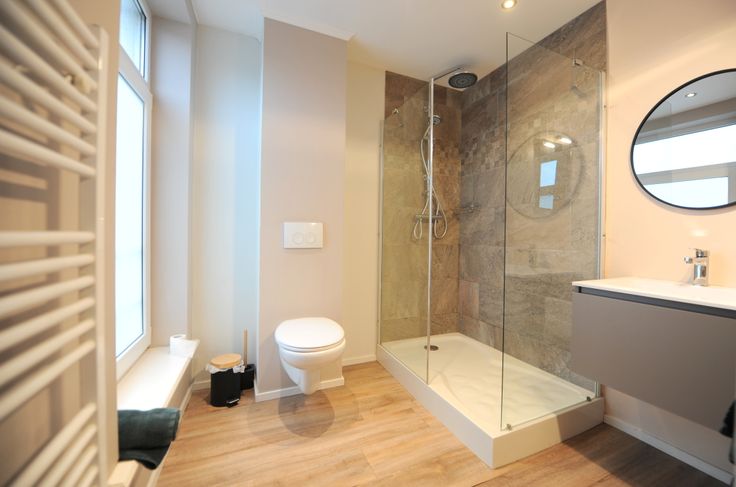 Het pand (gerenoveerd) omvat 5 verdiepingen. Onderste verdiep heeft een woongedeelte (of slaapkamer) met annex terras en ingerichte badkamer, Gelijkvloers heeft een inkomhall met doorgang naar achterhuis en wasruimte (met de technieken). Verdiep 1 en 2 hebben elk een slaapkamer met eigen badkamer en elk een familiekamer met eigen badkamer. Zolderverdiep heeft 2 slaapkamers en delen een badkamer met douche en ligbad.