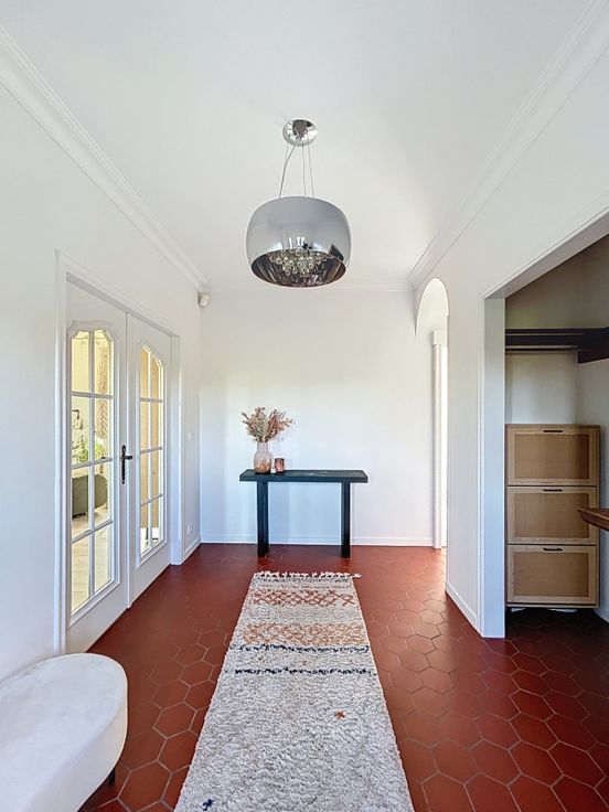 Salle de bain neuve. Cuisine équipée, frigo congélateur évier taque de cuisson four. Grand séjour lumineux et salle à manger. Vestiaire et hall d'entrée avec WC indépendant, la situation, la beauté, du bâtiment et de son environnement, la grande terrasse et le jardin en font bien rare.