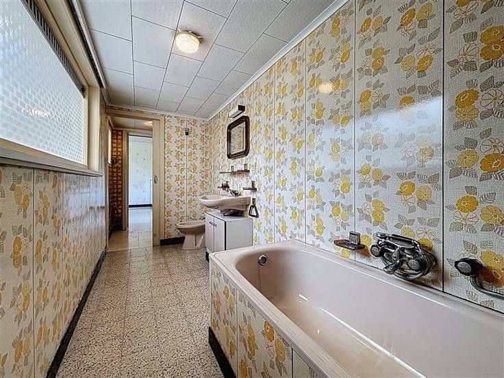 Gelijkvloers: inkomhal, woonkamer, keuken, apart toilet, badkamer, veranda, berging/waskamer, 2e toilet en kelder.
