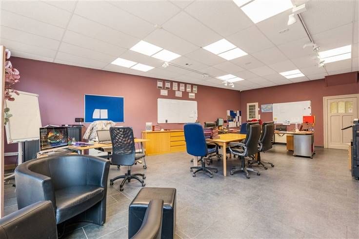 Het ruime, lichte interieur is voorzien van moderne, stijlvolle kantoorruimtes die een dynamische, productieve werkomgeving bevorderen. Elke ruimte is slim ingedeeld om de functionaliteit te maximaliseren, met een goed uitgeruste vergaderruimte voor personeels- of klantvergaderingen.