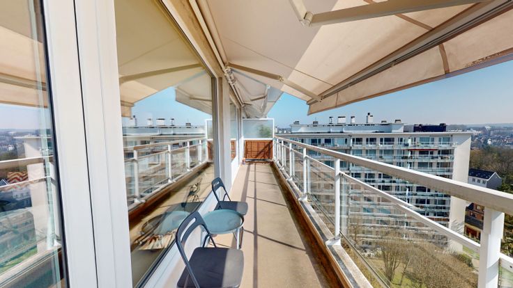UCCLE - À proximité de la place communale et de toutes les facilités, quartier Vossegat - Magnifique penthouse de +/- 104m² avec une grande terrasse orientée SUD, bénéficiant d'une vue dégagée sur Bruxelles - Excellent état : entièrement rénové en 2023 - Situé au 9e étage d'un immeuble très bien entretenu, avec ascenseur - Il se compose d'un hall d'entrée desservant le lumineux séjour de +/- 43m² donnant accès à la terrasse de +/- 11m², cuisine full équipée donnant accès à une seconde terrasse plus petite, hall de nuit desservant salle de bain, WC séparé, buanderie et 2 chambres (17m²-11m²) - Nombreux espaces de rangement - Cave - Garage box fermé (35.000€) - Double vitrage PVC - Électricité conforme - Chauffage central au gaz - PEB G - Libre à l'acte - VISITE VIRTUELLE : https://my.matterport.com/show/?m=ABJD6t8Tgkv - Coup de cœur assuré ! - Plus d'informations et visites, contactez-nous au 02/343.46.95 ou info@immobilieregeorges.be